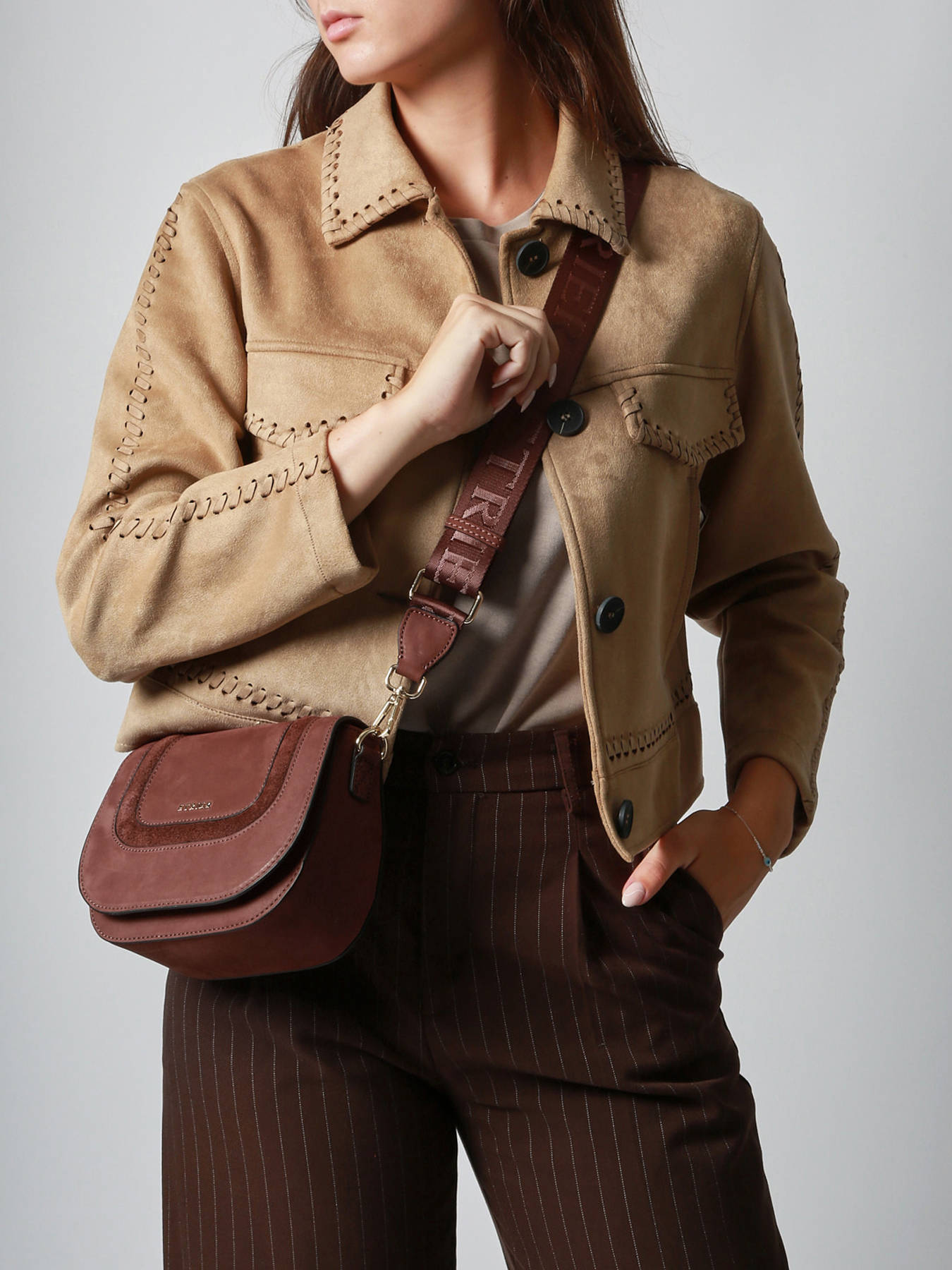 Le sac bandoulière ETRIER de la ligne LASSO, en petit format S, se ferme par un rabat aimanté associé à une fermeture zippée. La ligne LASSO se distingue par son jeu bi-matière aux détails arrondis, offrant un joli contraste de textures dans un volume plus compact. Le dos du sac est en cuir grainé, garantissant robustesse et maintien. Sa bandoulière sport-chic, agrémentée du bijou ETRIER, confère une allure moderne et raffinée. Ce sac au style structuré et élégant est parfait pour accompagner avec caractère les looks d’hiver plus discrets.