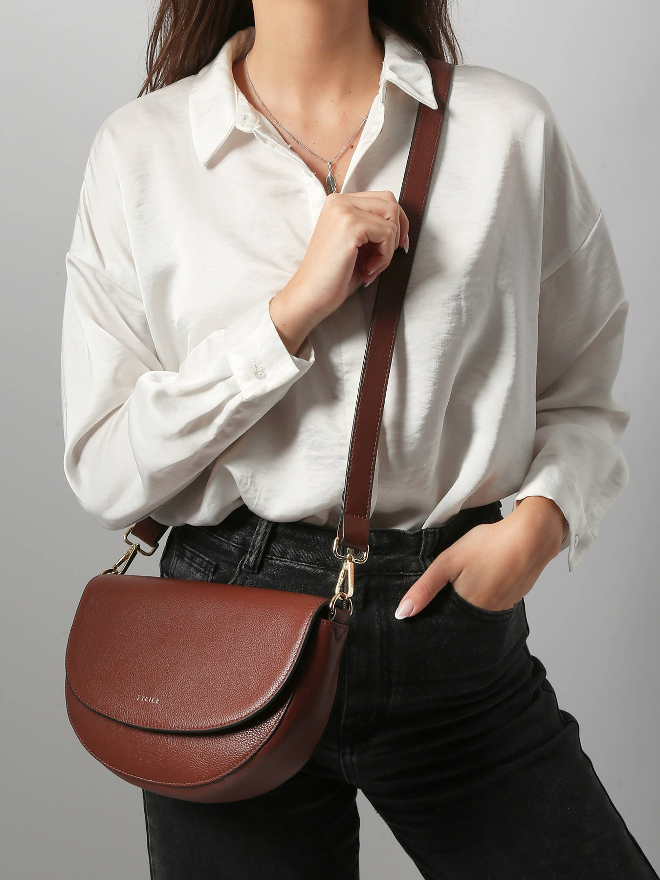 Découvrez le nouveau sac bandoulière de la ligne TRADITION par ETRIER, une pièce phare pour allier élégance et fonctionnalité. Ce modèle revisité séduit par son design tendance et intemporel, idéal pour compléter toutes vos tenues, que ce soit au quotidien ou pour des occasions spéciales. Fabriqué avec soin en cuir de vachette pleine fleur, il garantit une qualité exceptionnelle et une grande durabilité. Côté praticité, ce sac bandoulière se ferme facilement grâce à son rabat à pression aimanté sécurisé, tout en offrant un accès rapide à vos indispensables. À l’extérieur, une poche zippée discrète située à l’arrière vous permet de ranger vos effets personnels en toute sécurité. À l’intérieur, vous trouverez une poche simple et une poche zippée qui facilitent l’organisation de vos essentiels, comme vos clés, portefeuille ou smartphone. Les accessoires dorés ajoutent une touche de raffinement, tandis que son format compact et moderne s’adapte parfaitement aux besoins des femmes actives et élégantes.